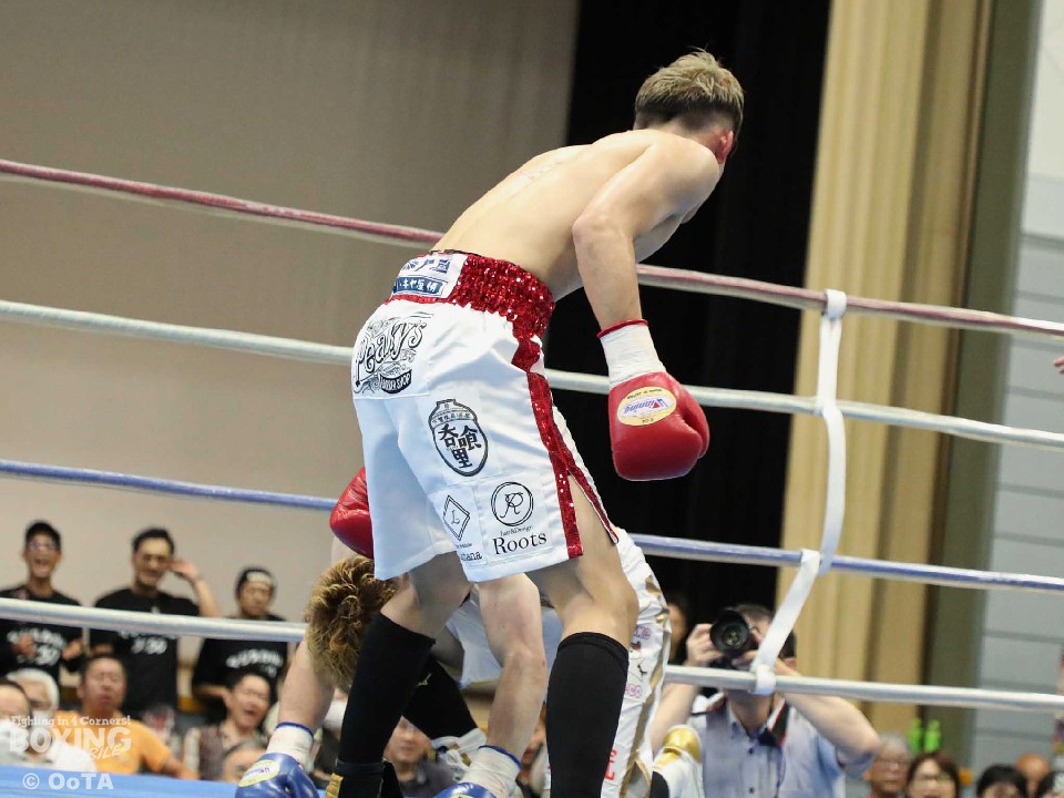 「ボディを叩いたら『ウッ!』と聞こえたので、一気に攻めた。ずっと福岡で試合がしたかったので、KO勝利で飾れてうれしい」と、4戦ぶりのKO勝ちを喜んだ。
