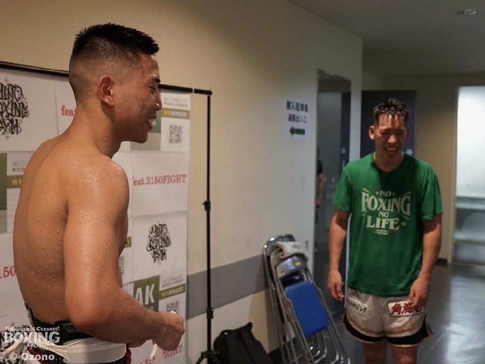 控え室での囲み取材中、拳を交えた酒井が挨拶に来た。開口一番「普通に強いと思った」とチャンピオンを称えると「最初は吹っ飛ばしてやろうと思って行ったけど、初回は、様子を見てるのかと思った」と、国本が面食らった初回を振り返った。「ジャブ対策はしてきたが、パワーに歴然の差があった」と完敗を認め、「負けずに(このまま)行ってほしいです。その後で(日本タイトルを)取りに行きます」と笑顔で健闘を称え合った。