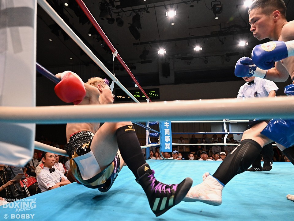 林は初回、右フックで立て続けにダウンを演出。フィニッシュまであと一歩まで迫ったが、体がもつれて倒れた際、右ふくらはぎを負傷。ラウンド終了後は、足を引きずりながら戻った。2回、内藤は左ボディを突き刺し反撃したが、林はボディにパンチを集めて譲らず。3〜4回は、内藤が徹底したボディ攻めで挽回した。ジャッジ2者が林を支持。5戦目で初勝利を挙げた林は、リング上で歓喜の涙を流した。