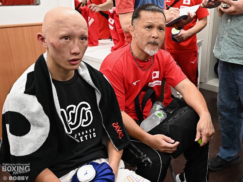 父・松本好二トレーナーは、試合の1ヶ月前に怪我をした影響で、スパーリングが少なかったことを明かした。「ジャブは良かったが、目の覚めるようなパンチは少なかった。今日は30点ですね」と辛口採点。それでも「万全でない中でも、めげずに調整した。ジャブの差し合いでも負けていなかった」と収穫も口にした。