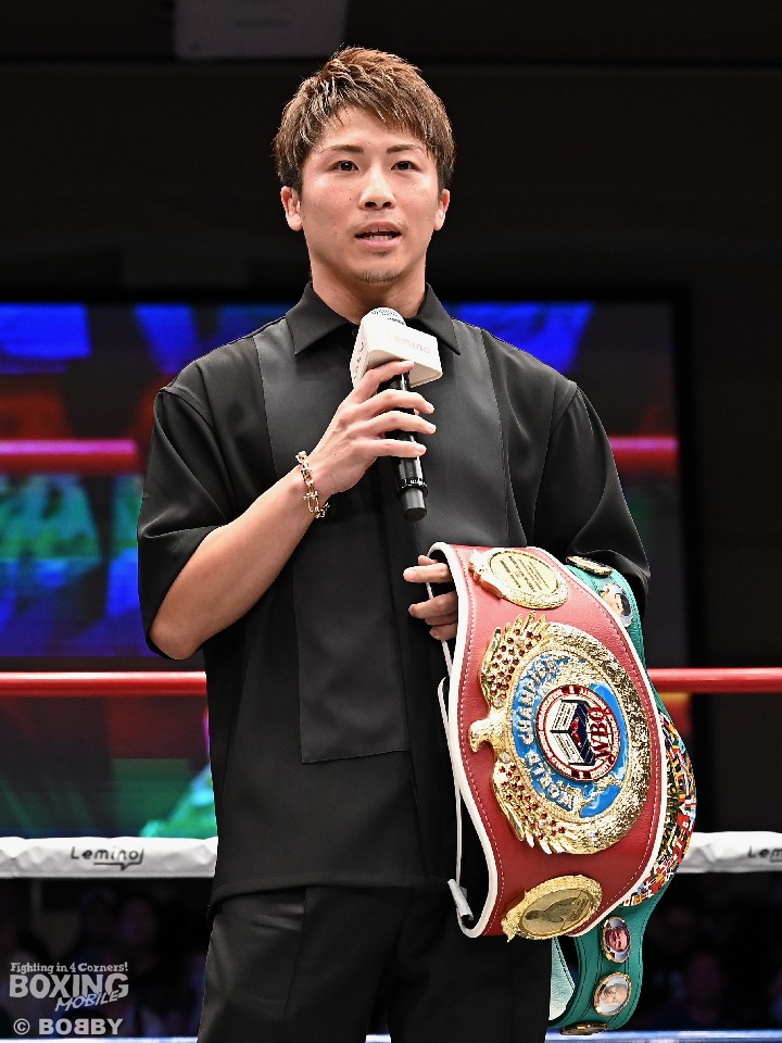 WBC(世界ボクシング評議会)・WBO(世界ボクシング機構)スーパーバンタム級新チャンピオンの井上尚弥(30=大橋)のベルト贈呈式が30日、後楽園ホールで開催された「NTT ドコモ Presents Lemino BOXING フェニックスバトル103」で行われた。