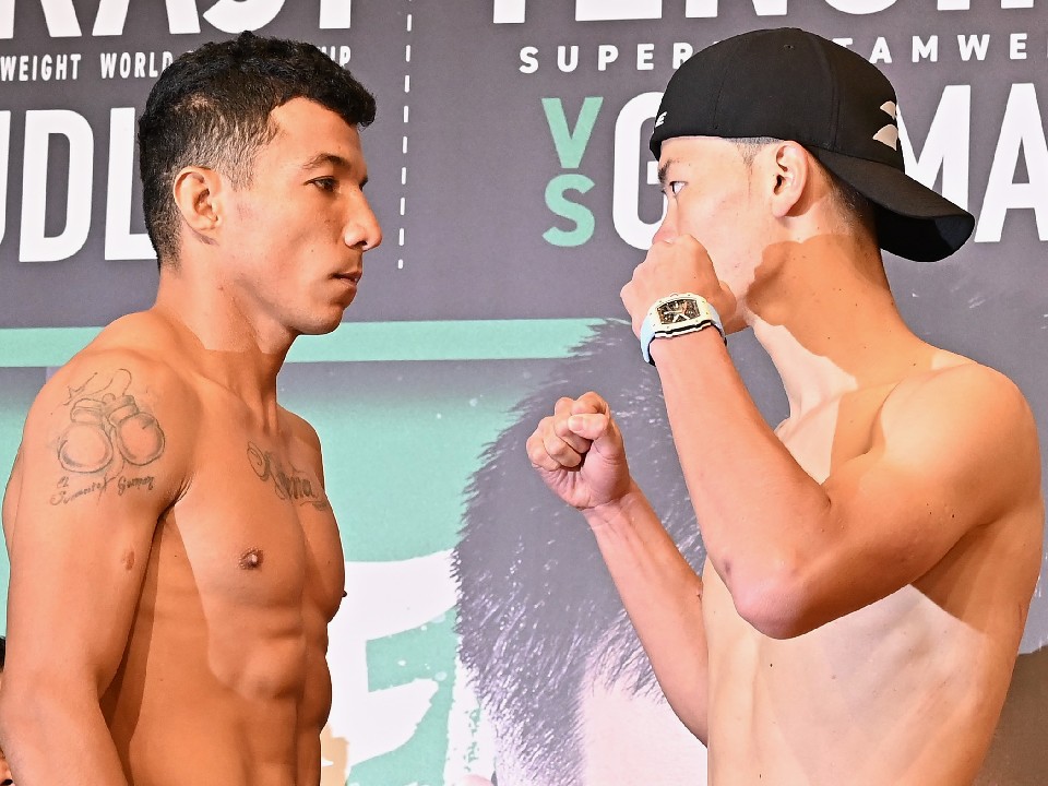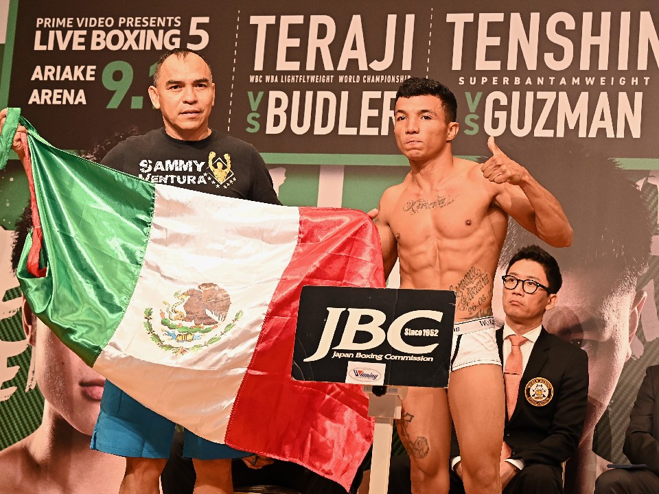 プロボクシング2戦目を迎える那須川天心(25=帝拳)と対戦相手でメキシコ・バンタム級王者のルイス・グスマン(27=メキシコ)が16日、都内のホテルで前日計量を終えた。「Prime Video Presents Live Boxing 5」のセミファイナルにセットされたこの試合は、123lb(55.7kg)契約8回戦でとして行われる。