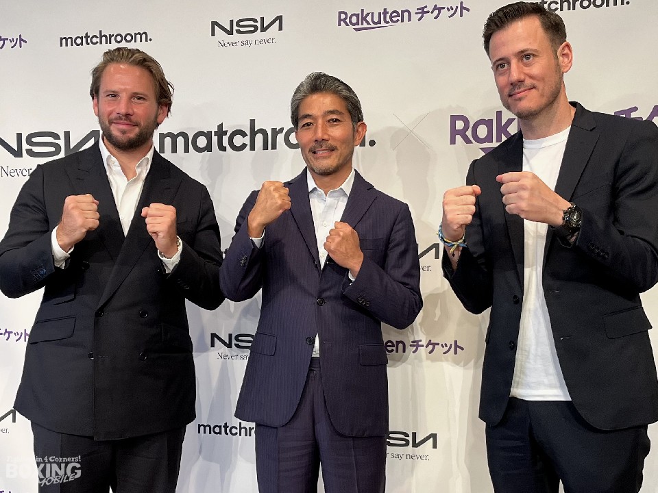 matchroom boxing(マッチルームボクシング社 )のフランク・スミスCEOが28日、都内のホテルで会見を開いた。会見には、楽天チケット株式会社の梅本悦郎代表取締役社長と、NSN(Never Say Never)の創業者でプレジデントのジョエル・ボラス氏も同席した。
