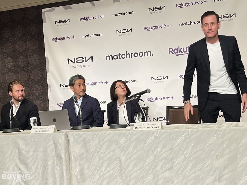 サッカーの世界的スーパースター、イニエスタ選手がヴィッセル神戸に移籍したのに伴って、日本でビジネスを展開してきたNSN社のボラス氏は「日本では、5〜6年前からビジネスチャンスを探ってきた」と、日本のスポーツ産業市場に強い関心を示し、「マッチルーム社とは、6ヶ月前から今回のプロジェクトに関する話し合いを続けてきた」。日本のボクシングの発展のために日本事務所では、日本人と外国人合わせて12名が従事していることを公表した。