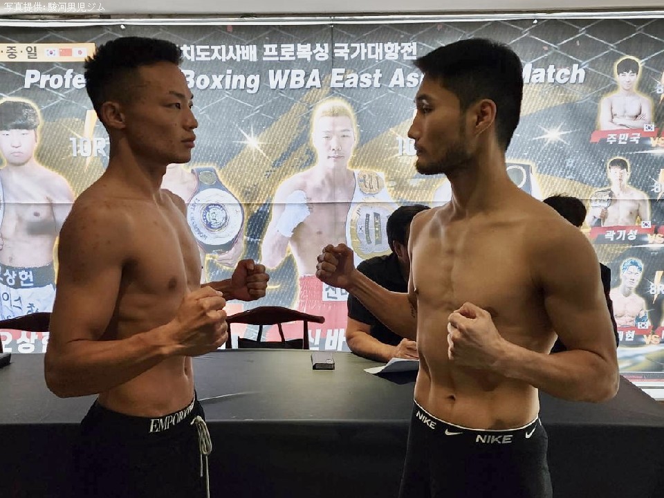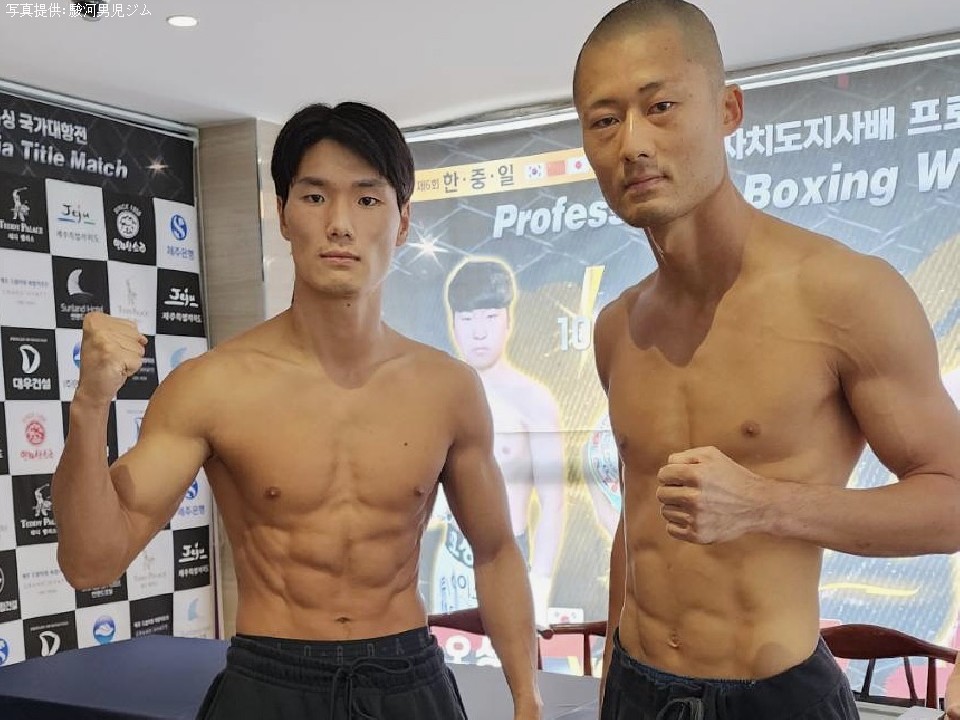 2021年度中日本フェザー級新人王の岩下千紘(27=駿河男児)と日本ミドル級5位の中田勝浩(32=井岡弘樹)が13日、韓国済州島で前日計量に臨んだ。