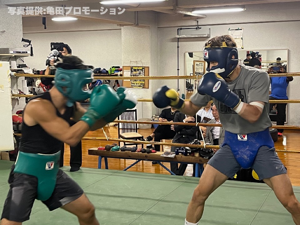 プレスをかけながら右から切り込む坂に対し、サウスポー力石は反応の良さを見せると、左ストレートを好打。前の手で上手くコントロールしながら、緩急をつけた攻撃を披露した。3回、坂は圧力を強めたが、力石は距離をキープしながら左ストレートで顔を弾き、優勢に進めた。力石は、スパーリング終了後にミット打ちを10ラウンドこなし、順調ぶりをアピールした。