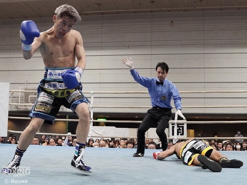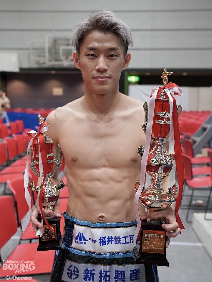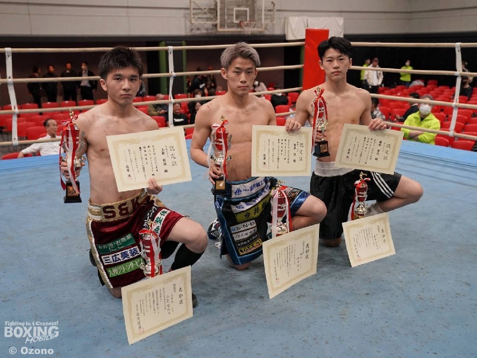 敢闘賞には、スーパーフライ級の藤野零大(ふじの・れおん/19=カシミ)が選ばれた。中上勝一朗(33=江坂)との一戦は、2回に相手の右カウンターを浴びてダウンを喫したが、藤野は3回にプレスをかけて、右ストレートでダウンを奪い返すと、4回にリターンの右で倒して逆転勝ちした。