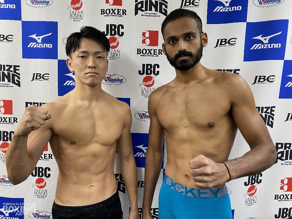 セミファイナルでは、日本ミニマム級5位の金谷勇利(27=金子)と諸岡直樹(30=セレス)が激突する。金谷は100gアンダーの47.5kg、諸岡は400gアンダーの47.2kgでクリアした。