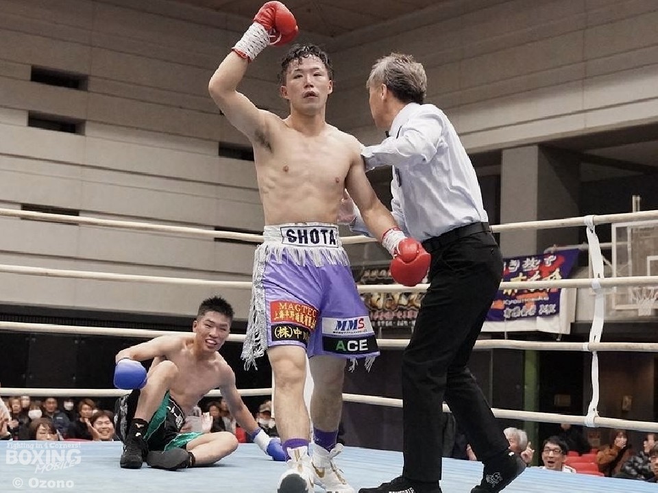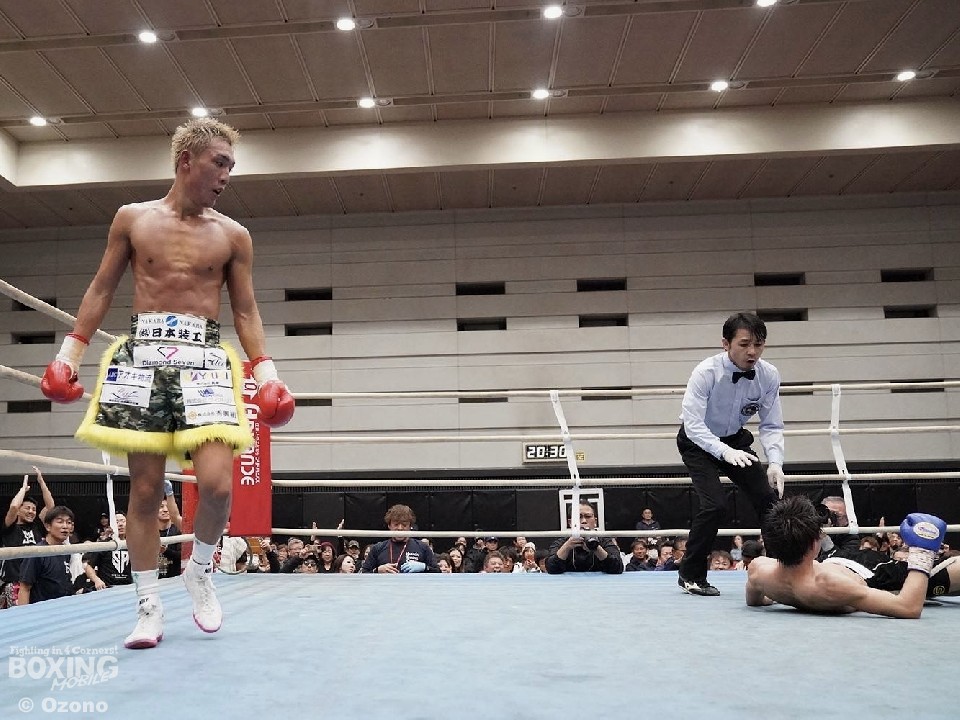 セミファイナルでは、日本フライ級8位の浅海勝太(28=ハラダ)が51.0kg契約8回戦で高埜響(25=六島)と拳を交えた。序盤から、ノーランカーの高埜が前の手でコントロールしつつ、ワンツーをヒット。距離をキープしながら、ポイントをピックアップした。守勢を強いられた浅海は6回、プレスを強めると右ストレートをジャストミート! 痛烈なダウンを奪った。立ち上がった高埜に迫ると、パンチをまとめてレフェリーストップに持ち込んだ。
