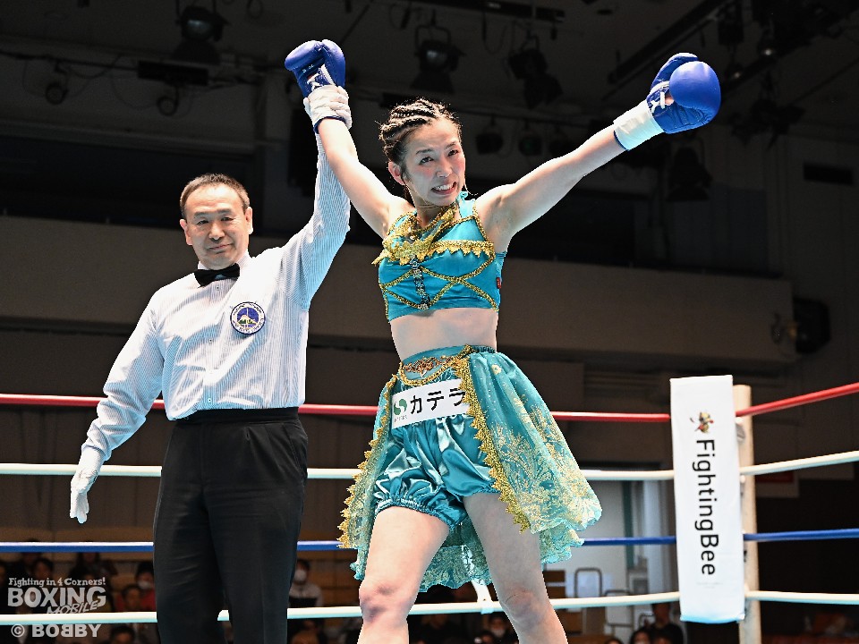 第6試合女子アトム級6回戦では、同級6位のモンブランみき(31=一力)と同級9位の松尾亜生理(21=宇部)が対戦した。