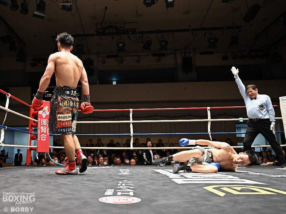 @úå–x‚ªƒWƒƒƒu‚©‚烃“ƒc[‚ð‘Å‚¿ž‚Ýæ‚ÉŽdŠ|‚¯‚邪A‰F’Ö؂̓uƒƒbƒN‚µ‚È‚ª‚ç—âÂɑΉžB2‰ñ‚É‚È‚é‚ÆA‰F’Ö؂ªƒvƒŒƒX‚ð‚©‚¯‚ÄAŠÉ‹}‚ð‚‚¯‚½ƒRƒ“ƒrƒl[ƒVƒ‡ƒ“‚ÅU‚ß—§‚Ä‚½BŸ•‰‚ªŒˆ‚Ü‚Á‚½‚Ì‚ÍA5‰ñB‰F’Ö؂Í㉺‚ɑł¿•ª‚¯‚邯Aƒƒ“ƒeƒ“ƒ|‚¸‚炵‚ÄA‰EƒXƒgƒŒ[ƒg‚ðƒWƒƒƒXƒgƒ~[ƒgB’É—ó‚ȃ_ƒEƒ“‚ð’D‚¤‚ÆAƒŒƒtƒFƒŠ[‚ÍŽŽ‡‚ðƒXƒgƒbƒv‚µ‚½B