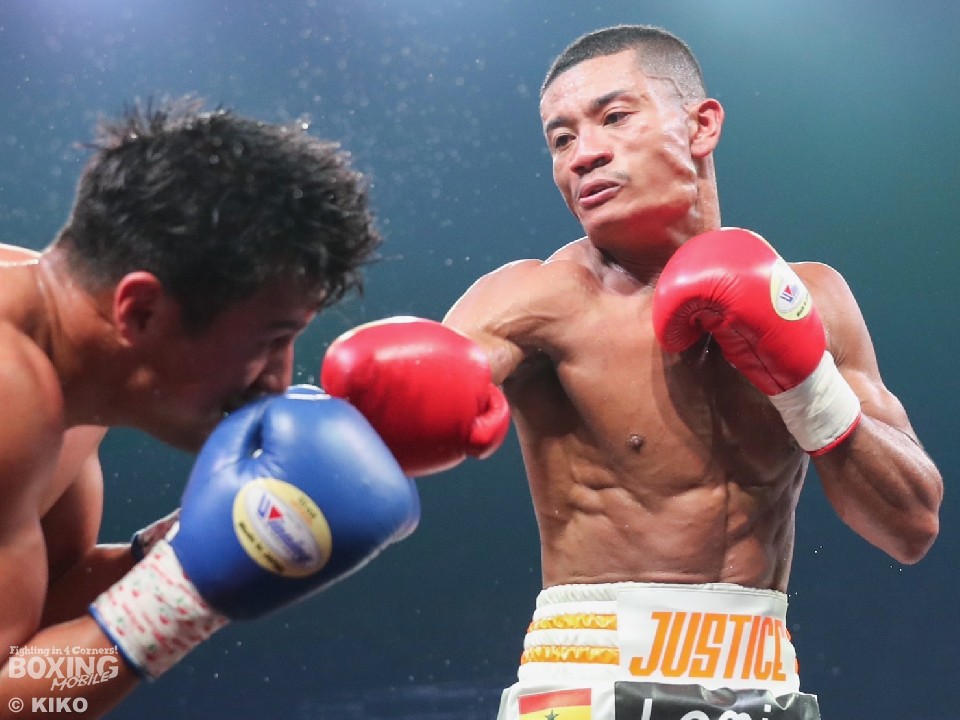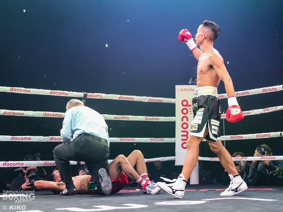 サウスポー武居は、右フックから左ボディストレートで仕掛けると、2回に鋭い踏み込みから左ボディフックを直撃! 痛烈に倒して10カウントを聞かせた。