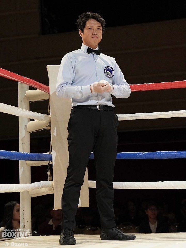 「ボクシングを引退したら、選手として競技から離れることになる。しかし、これからもボクシングに携わっていきたいなと思った」。グローブを吊るすと、2022年12月にはレフェリーやジャッジの研修を始めた。1年3ヶ月みっちりと先輩レフェリーから指導を受けて、プロテストで何度もレフェリーを務めてこの日を迎えた。
