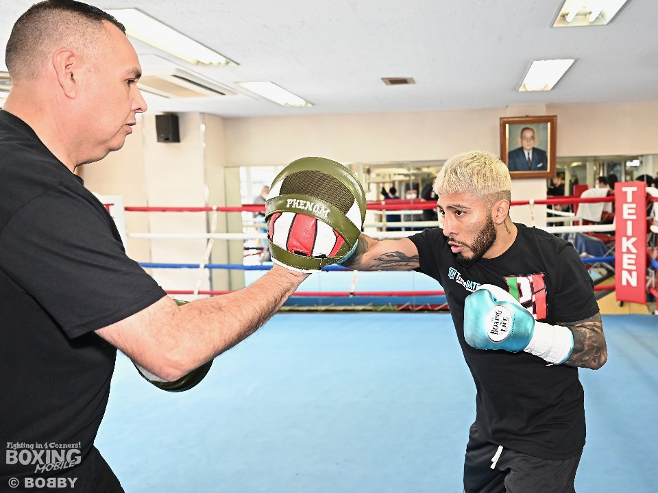 公開練習ではシャドーボクシング、ミット打ち、ダブルのパンチングボールをそれぞれ1ラウンド披露。ミット打ちではテンポよく打ち込み、左フックに威力を感じさせた。