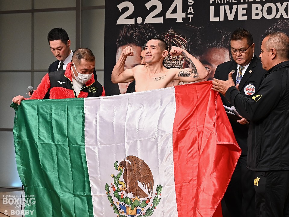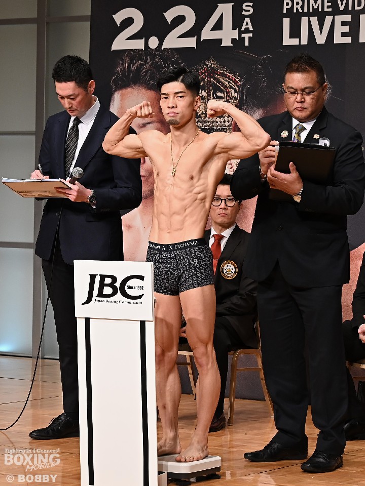 「Prime Video Presents Live Boxing 第7弾」の前日計量が23日、都内の東京ドームホテルで行われた。日本人3人目となる4階級制覇に向けてWBO世界スーパーフライ級王座決定戦に臨む同級1位の田中恒成(28=畑中)と、同級2位のクリスチャン・エドゥアルド・バカセグア(26=メキシコ)が計量を終えた。