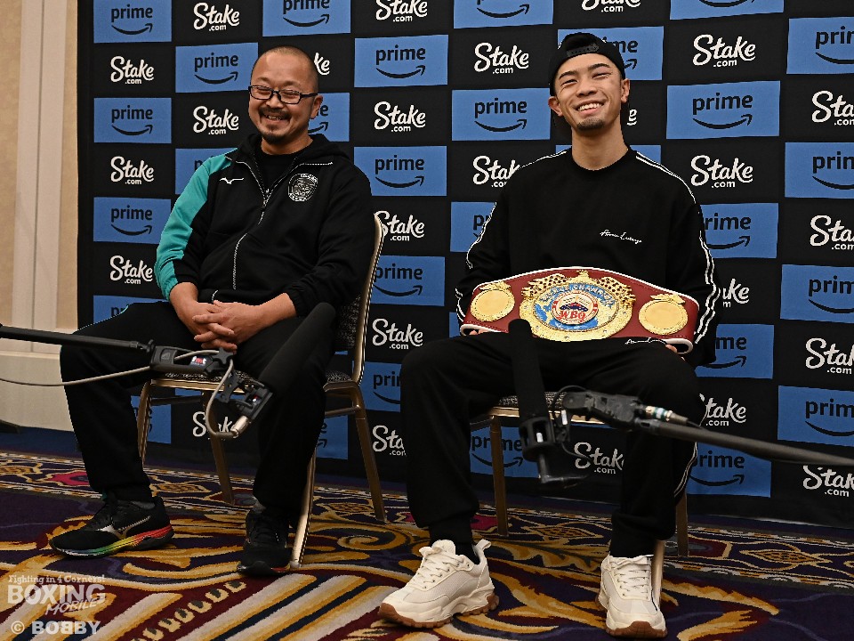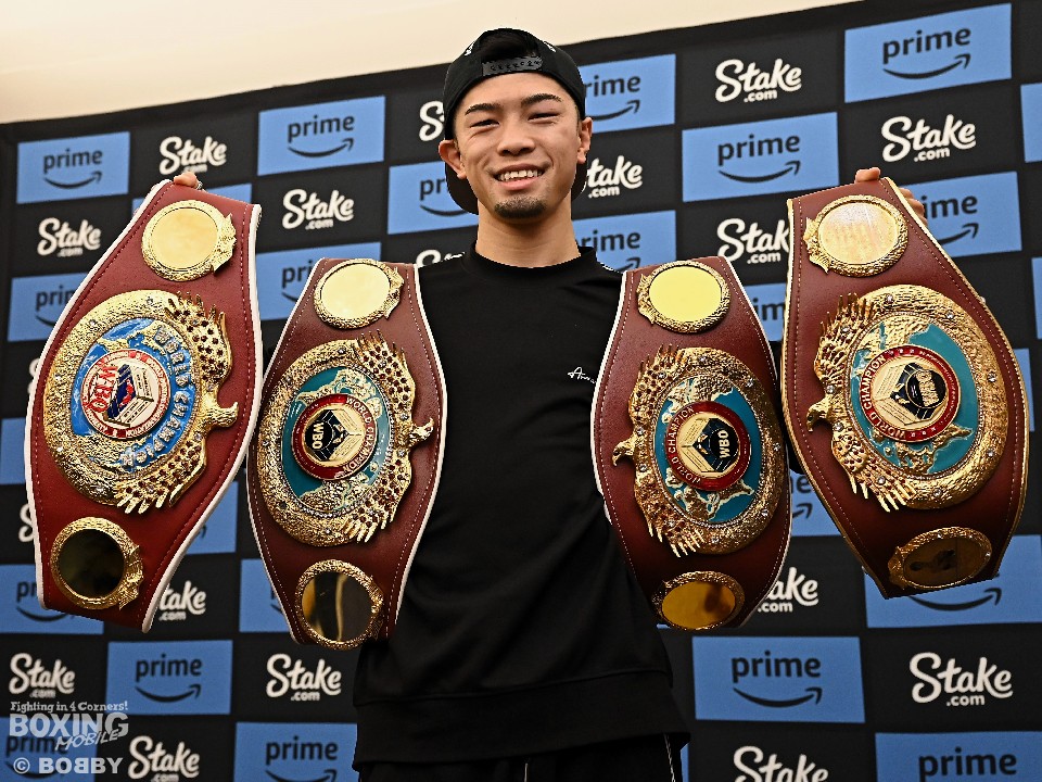 会見後には、これまで獲得してきたWBOの4本のベルトを持って写真撮影に応じた。しばらく持っていたが、「キツい…」とベルトの重さに思わず声が漏れると、報道陣から笑いが起こった。これまで成し遂げてきた偉業を、ベルトを持つことであらためて体感したようだ。
