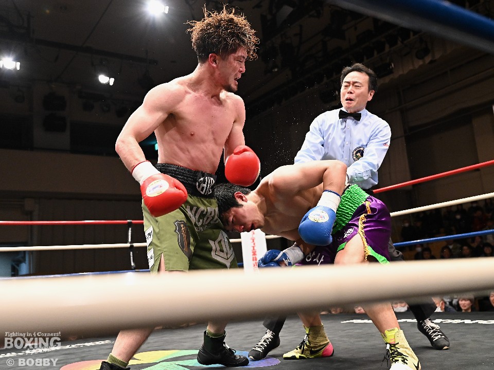 初回は、チョーのプレスに後手に回った左右田だが、2回に右カウンターで応戦すると打撃戦に突入。我慢比べの打ち合いが続く中、左右田は左のダブルのコンビネーションを好打。ボディにパンチを集めて体力を削った。8回、左右田はワンツーで腰を沈めさせると、怒涛の連打でレフェリーストップに持ち込んだ。