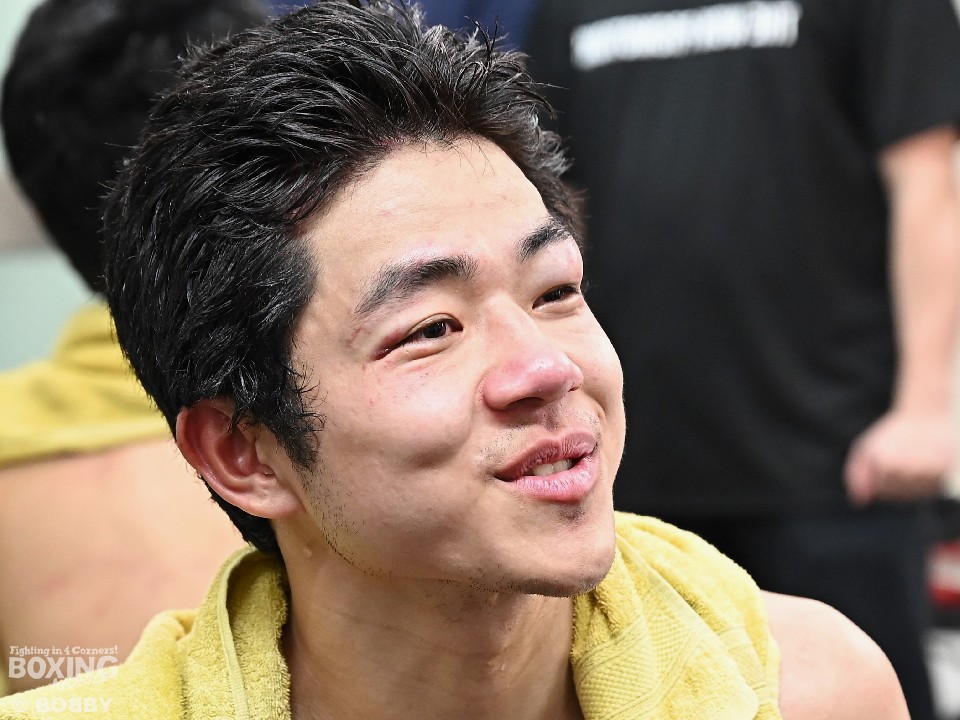 一方、最後まで粘りを見せたチョーは「(左右田選手は)パンチが強くてディフェンスが良かった。最後はスタミナが切れてしまった」と苦笑いした。