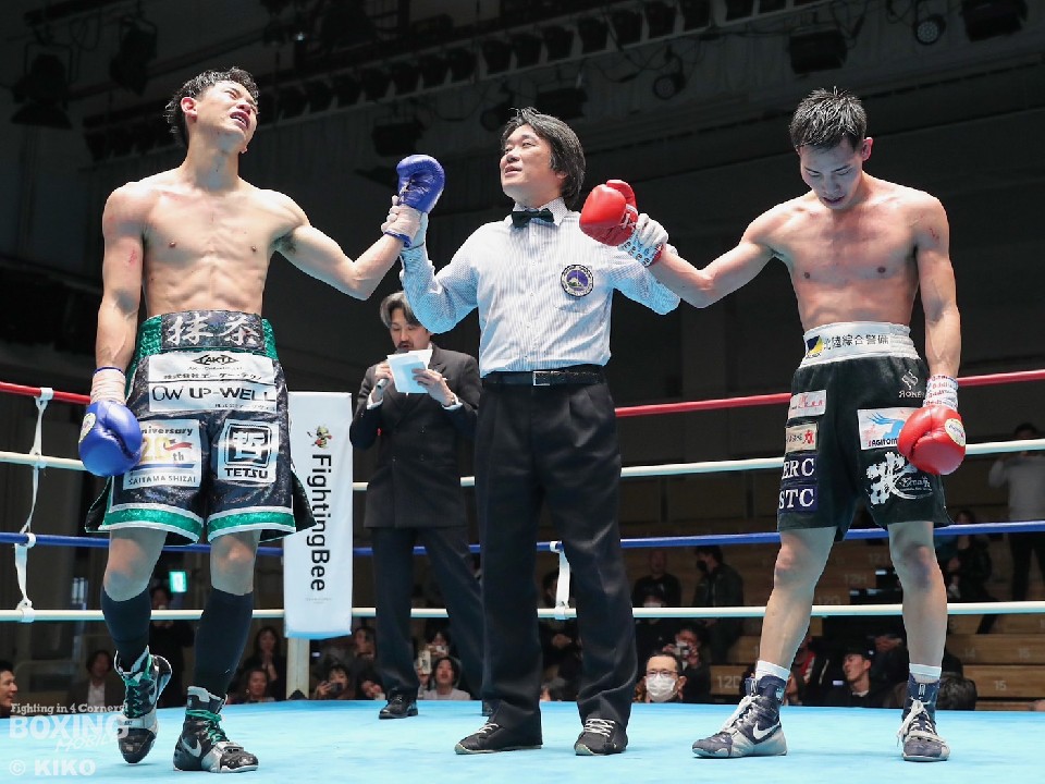 日本フェザー級13位の英洸貴(はなぶさ・ひろき/25=カシミ)と元日本ランカーの中川抹茶(29=スパイダー根本)が15日、後楽園ホールで開催された「Fighting Bee.28」のメインイベント、フェザー級8回戦で対戦した。