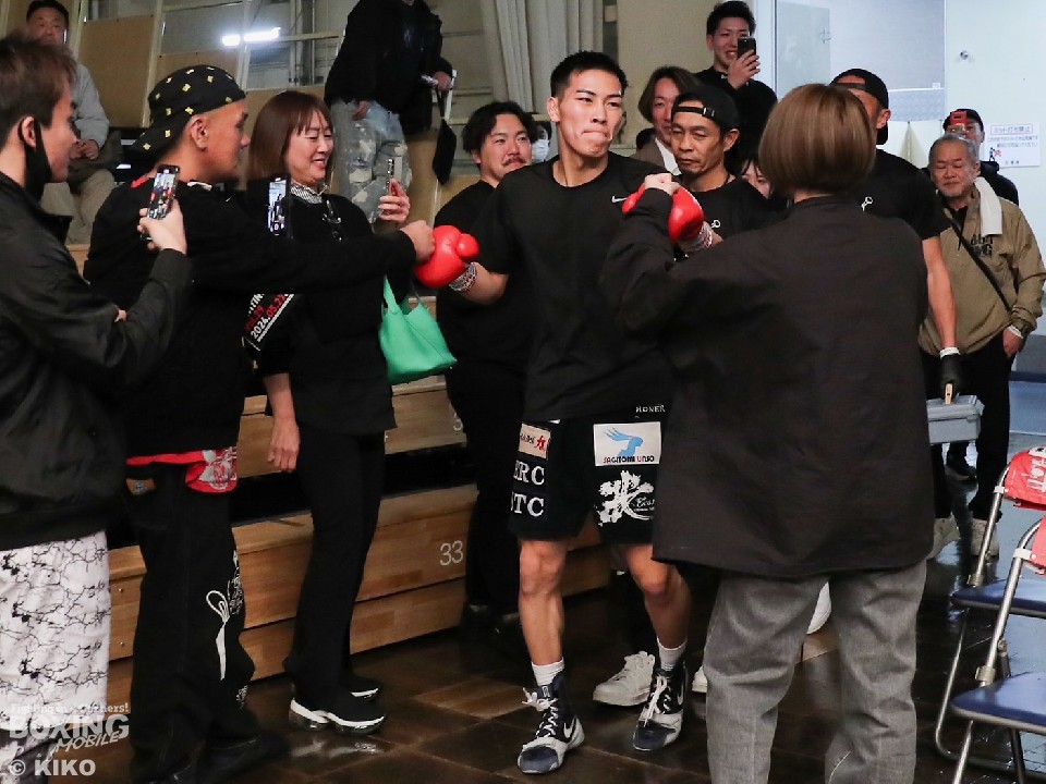 英が所属する金沢市のカシミジムは被害が少なかったため、1月2日からSNSで呼びかけて、ジムに集まった支援物資を被災地に届けたという。この日も「試合を見て元気をもらいに来た」と石川県から約40名の応援団が駆けつけた。
