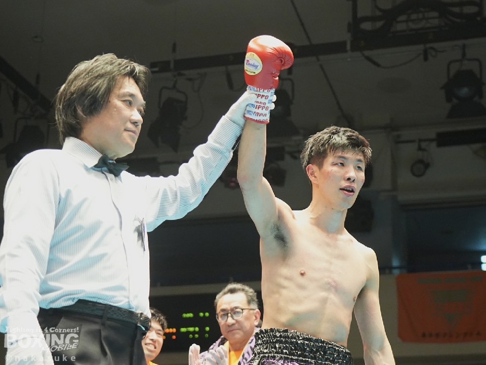 初回からサウスポーの石井がショートの左を当てて、相手の左目上を切り裂き先制。しかし、2回には太一が右ボディから右ショートを繋ぎダウンを奪うと、再開後には右フックでさらにダウンポイントを奪った。必死にクリンチで時間を使った石井は、ラウンド終盤に右フックで、さらに太一の傷を開かせた。続く3回には真っ向勝負の打ち合いを見せたが、太一の出血が悪化。2度のダウンを喫した石井だったが、的確なパンチでTKO勝利を掴んだ。