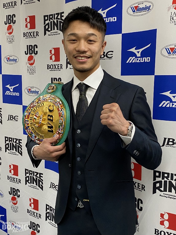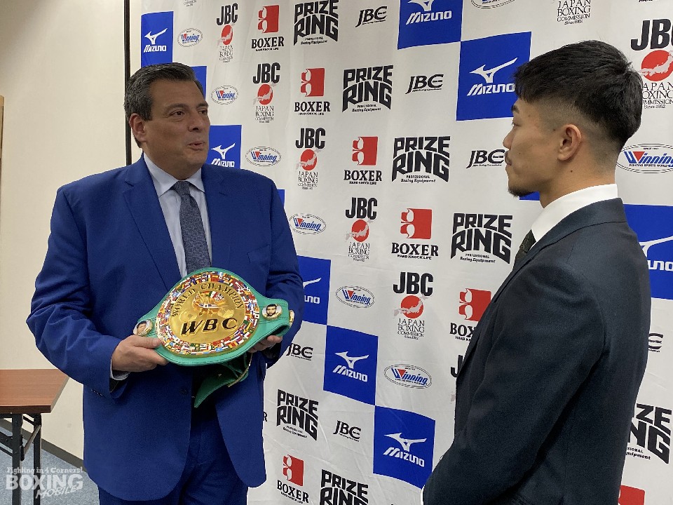 スライマン会長は「WBCのチャンピオンになることによって、(WBCの)家族の一員になる。スーパーフライ級のチャンピオン時代に『将来、WBCのチャンピオンになりたい』と聞いていた。ベルトを手渡すことができて光栄」と語った。WBCベルトのほか、歴代のWBCベルトの小型レプリカ4本と、WBC特製キャップを贈った。