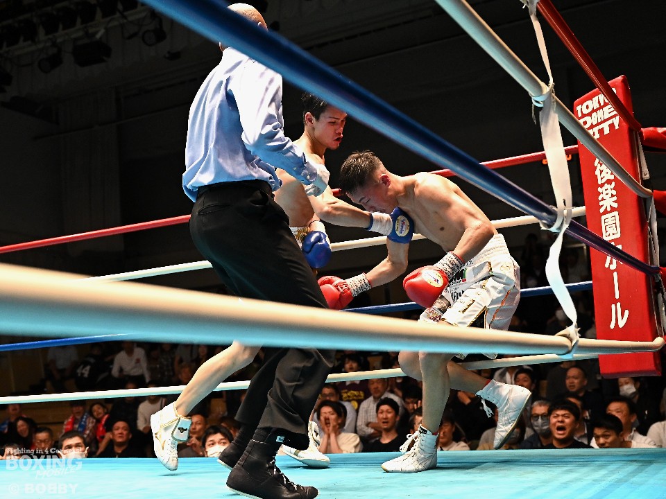 ジャブの差し合いで始まった試合は、浦川が左でダウンを奪った。2回以降も浦川はジャブからワンツーにつなげてペースを維持。神足は右フックを叩きつけたが、守勢を強いられた。5回、浦川が右フックでグラつかせると、追撃の右で2度目のダウンを演出。6回、浦川はワンツーで神足の腰を沈めさせ、連打でフィニッシュに持ち込んだ。