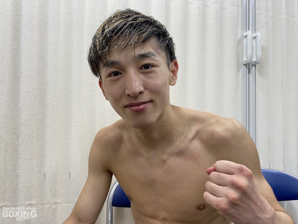 連敗を喫していたが、長いトンネルを脱出した。「試合前に松本トレーナー(松本好二トレーナー)から『川島(川島郭志=元WBC世界スーパーフライ級王者/川島ジム会長)もキャリア初期は負けたが、そこから強くなってチャンピオンになったよ』と言ってもらえて、それが励みになった。自分も川島さんのようになりたい」と目を輝かせた。