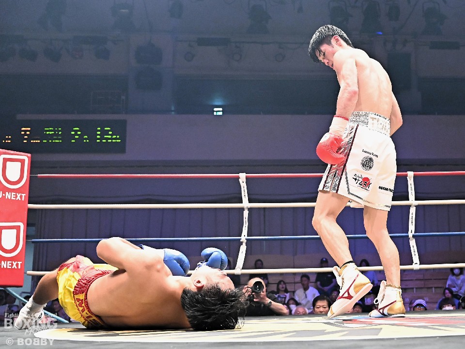 きっちりKO決着で試合を終えたことには「最後のパンチは狙ったわけではなくて、流れでコツンと当てたのが入って倒れたので、はっきりとした感触がなくて驚いた」と振り返り、「反省点としては所々、雑になったところ。そこを集中すれば、もらわずにすんだパンチもあったと思う」と、課題も見つけた。