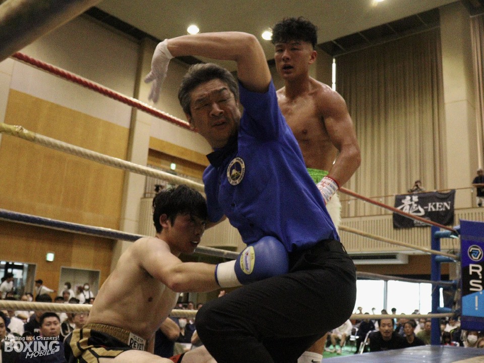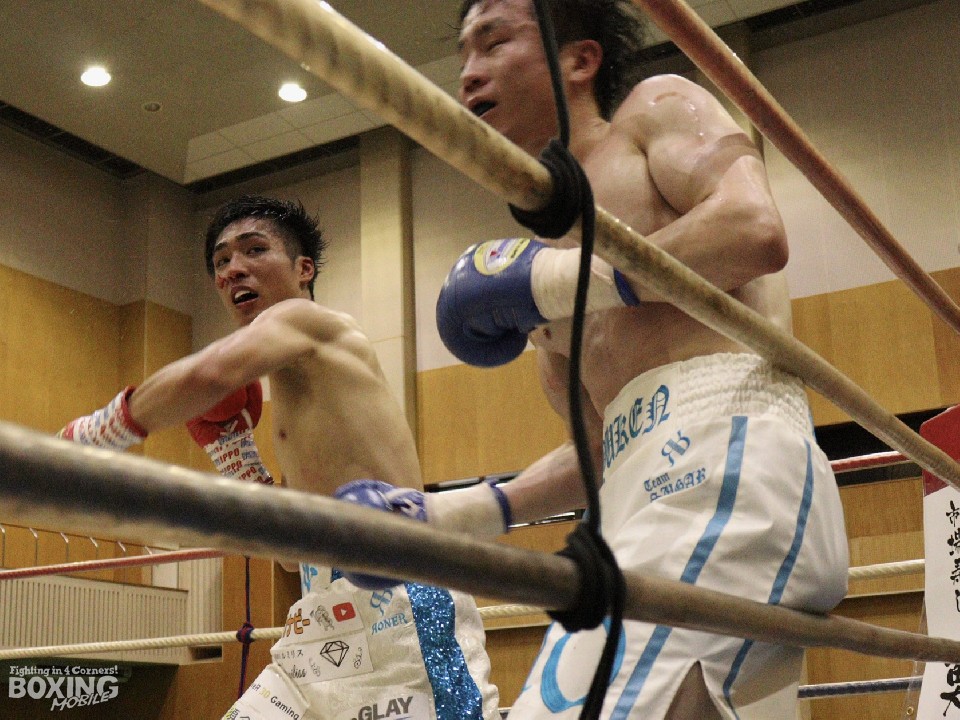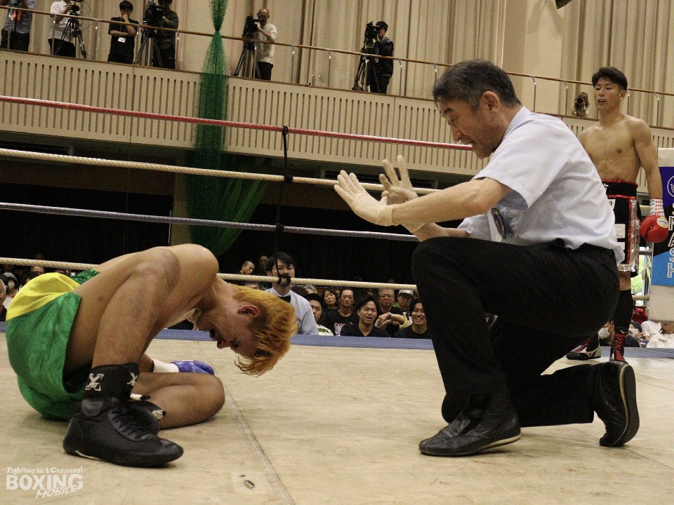 福永がジャブからワンツーにつなげて丁寧な試合運びを見せると、ワンツーに続く左ボディで痛烈なダウンを演出。ソンポンに10カウントを聞かせた。
