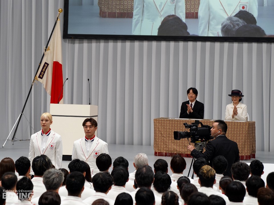 7月5日、国立代々木競技場第二体育館と東京体育館では『第33回オリンピック競技大会(2024/パリ)』に出場するTEAM JAPAN(日本代表選手団)の結団式と壮行会が盛大に開催された。式典には秋篠宮ご夫妻、ボクシング競技の内定選手である男子57kg級・原田周大(専修大学)と男子71kg級・岡澤セオン(INSPA)を含むTEAM JAPANの選手、そのほかスポーツ界の主要関係者が多数参加した。