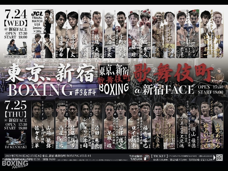 新宿新宿FACEで25日に開催される「新宿歌舞伎町BOXING #4」の第一試合が注目されている。ウェルター級世界上位ランカーの佐々木尽(22=八王子中屋)の弟、佐々木革(19=八王子中屋)と身長191cmの山崎龍弥(25=T&H)が、74.0kg契約4回戦で対決。その前日計量が24日、都内の日本ボクシングコミッション(JBC)本部事務局で行われ、身長174cmの佐々木は73.7kg、山崎も73.5kgで計量をクリアした。