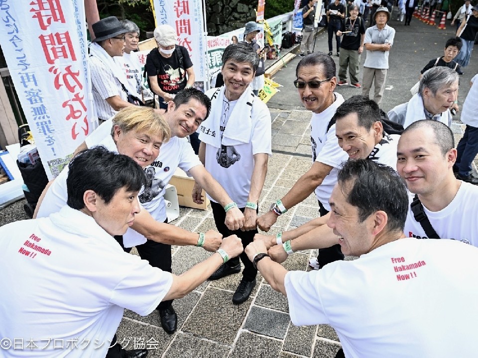 長く袴田さんを支援してきたボクシング関係者は同日、判決を見届けるために朝から静岡に集結。日本プロボクシング協会袴田巌支援委員会のメンバーをはじめ、元世界王者の飯田覚士さん、リングアナウンサーの須藤尚紀さんらも駆けつけ、街頭で袴田さんの無罪を訴えた。