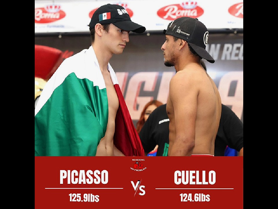 スーパーバンタム級55.3kgをピカソは57.1kg。クエリョは56.5kgで秤を降りた。