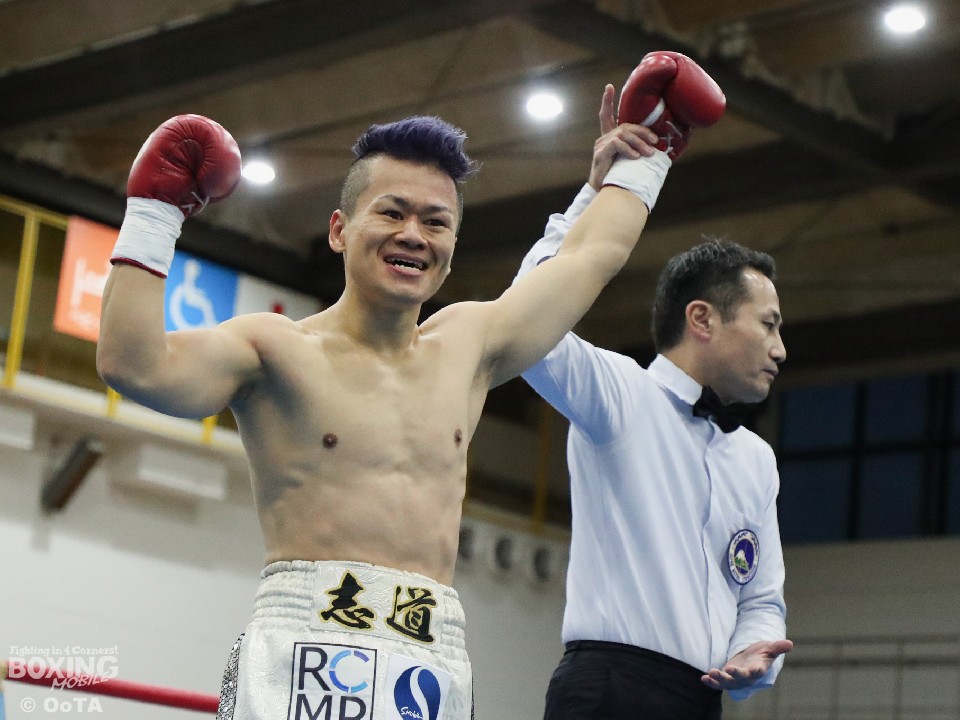 開始から前に出た新井が右のオーバーハンドを狙うが、ガードで出方を見た下村は左ボディを好打。動きの止まった新井にワンツーで攻めこんだが、新井が相撃ちの左フックを決めて、痛烈なダウンを奪った。大きくダメージを負った下村は、なんとか立ち上がるがカウントアウト。初回でのKO決着に会場は騒然。新井が日本ランカーを相手にアップセットを起こした。