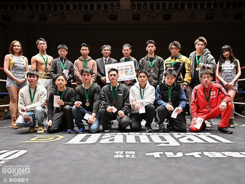 DANGAN賞金トーナメントの決勝戦が17日、都内の後楽園ホールで開催され、各階級の優勝者には、5万円の賞金と大会MVPには30万円が贈られた。KO勝利を挙げた選手には、KOラウンドに応じて、それぞれKO賞も贈られた。