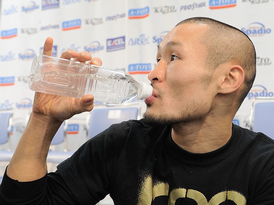 今年11月4日にタイ王国にて世界王者への返り咲きを目指したが、一歩及ばなかった元世界王者・名城信男(六島)。関西の雄に休む暇はない。それでも、無事計量を終えホッとした表情を見せた。