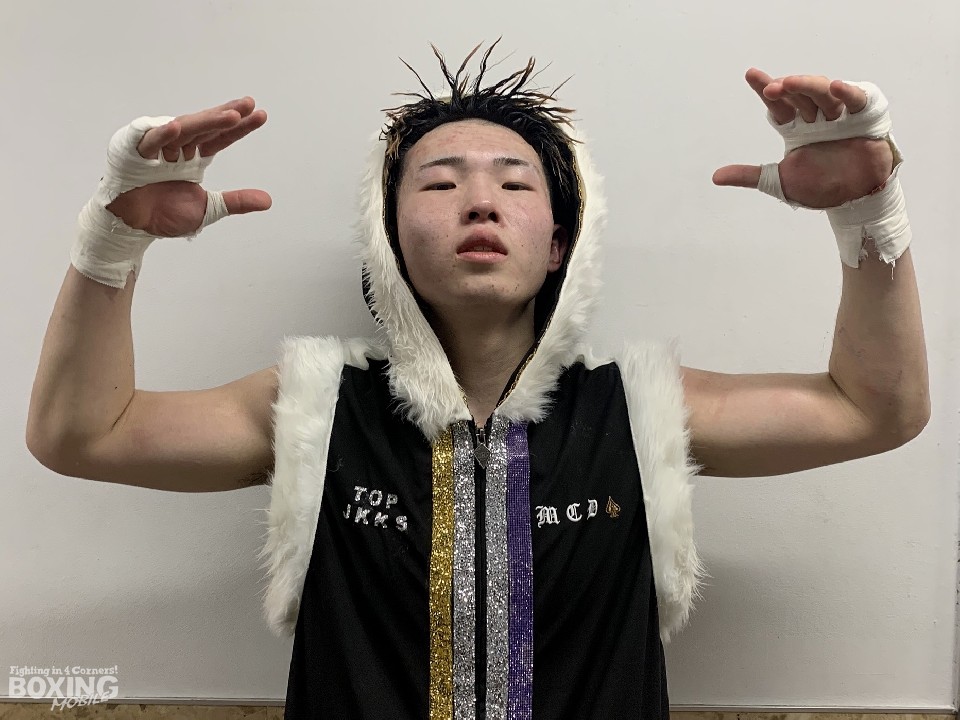 「X(旧Twitter)で自分の体形についてバカにされたので『絶対に倒してやる』と思っていた。ただ、普段の体重は90kg以上あって、試合の度に16〜18kg減量している。これからは身体作りもしていき、5ヶ月後に予定されている新人王に挑みたい。これからは距離を取るタイプを捕まえて倒すボクシングをしたい。自分が倒されることは絶対にない」と今後に向けて気を引き締めた。