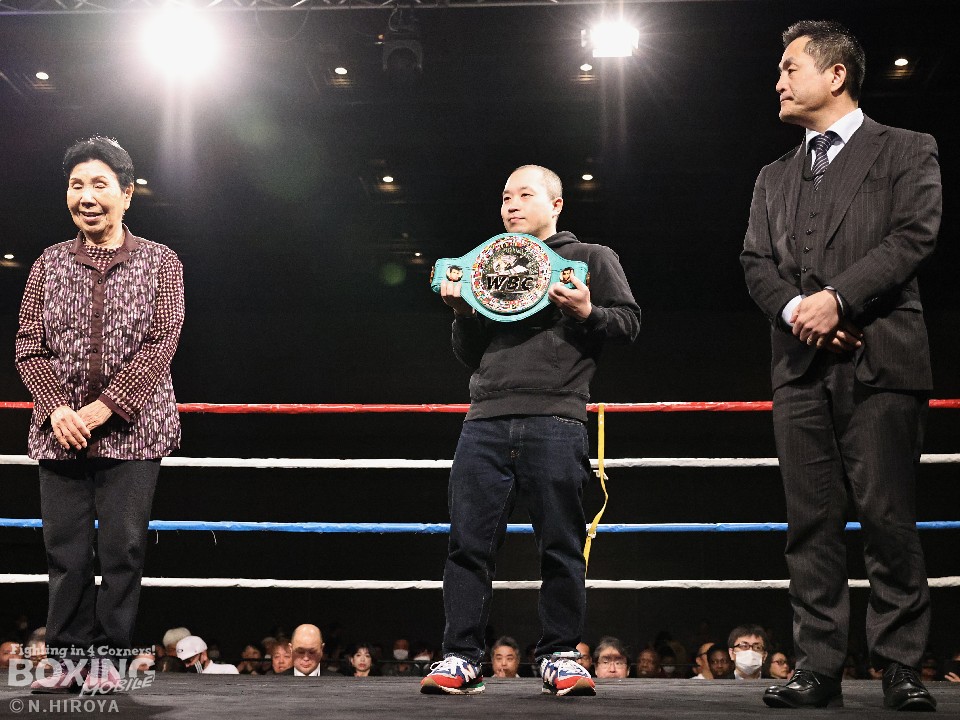 この日、袴田さんは2014年にWBC(世界ボクシング評議会)から授与された「名誉チャンピオンベルト」を持参した。