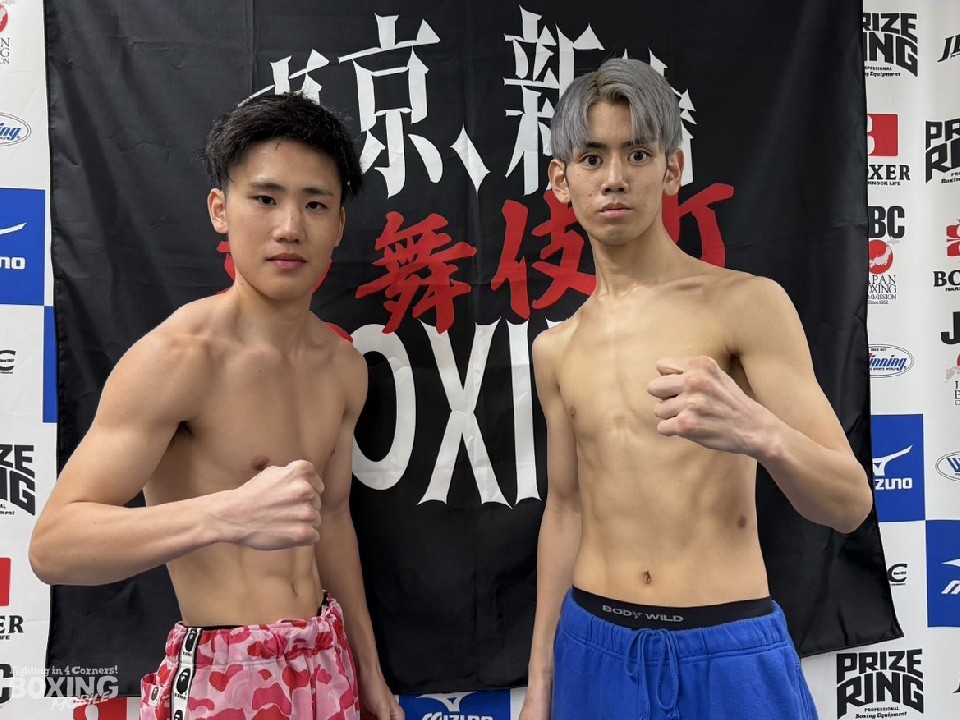 セミファイナルは、両選手ともにA級昇格が懸ったスーパーフェザー級6回戦となった。2021年と2022年の東日本新人王決勝まで駒を進めた池上いつ己(21=八王子中屋)と、昨年の全国日本新人王で、メインイベントに登場する梶野と昨年2月に引き分けた、スタイリッシュなボクシングが持ち味の橋本舞孔(20=新日本木村)の対決。2戦連続でサウスポーと対戦する池上の成長ぶりにも期待したい。計量は池上が58.9kg、橋本は58.8kgでクリアしている。
