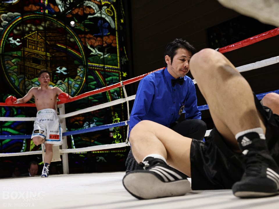 セミファイナルでは、河合寅太朗(22=フュチュール)と山名生竜(23=HKスポーツ)が、60.0kg契約6回戦で対決。初回にサウスポーの山名がダウンを奪ったが、河合がダウンを奪い返して、最後はパンチをまとめて、レフェリーストップを呼び込んだ。