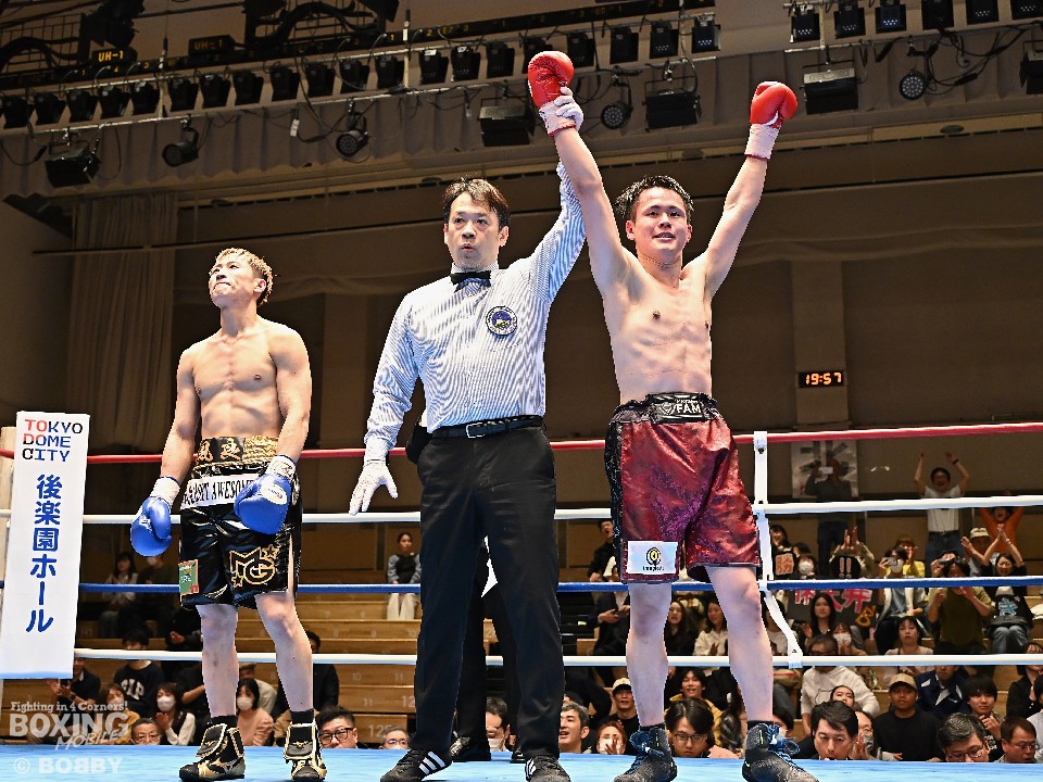 第82回東日本新人王予選が18日、後楽園ホールで開催され、全7試合で熱戦が繰り広げられた。この日、ボクシングの聖地に隣接する東京ドームホテルでは、今のボクシング人気を象徴するようなビッグマッチの発表があった。WBC(世界ボクシング評議会)バンタム級王者の中谷潤人(27=M.T)とIBF(国際ボクシング連盟)同級王者の西田凌佑(28=六島)による王座統一戦だ。この発表に感化されたのか、東日本新人王予選は開幕したばかりだが、プロ叩き上げの新人ボクサーたちが頂点を目指して奮闘した。