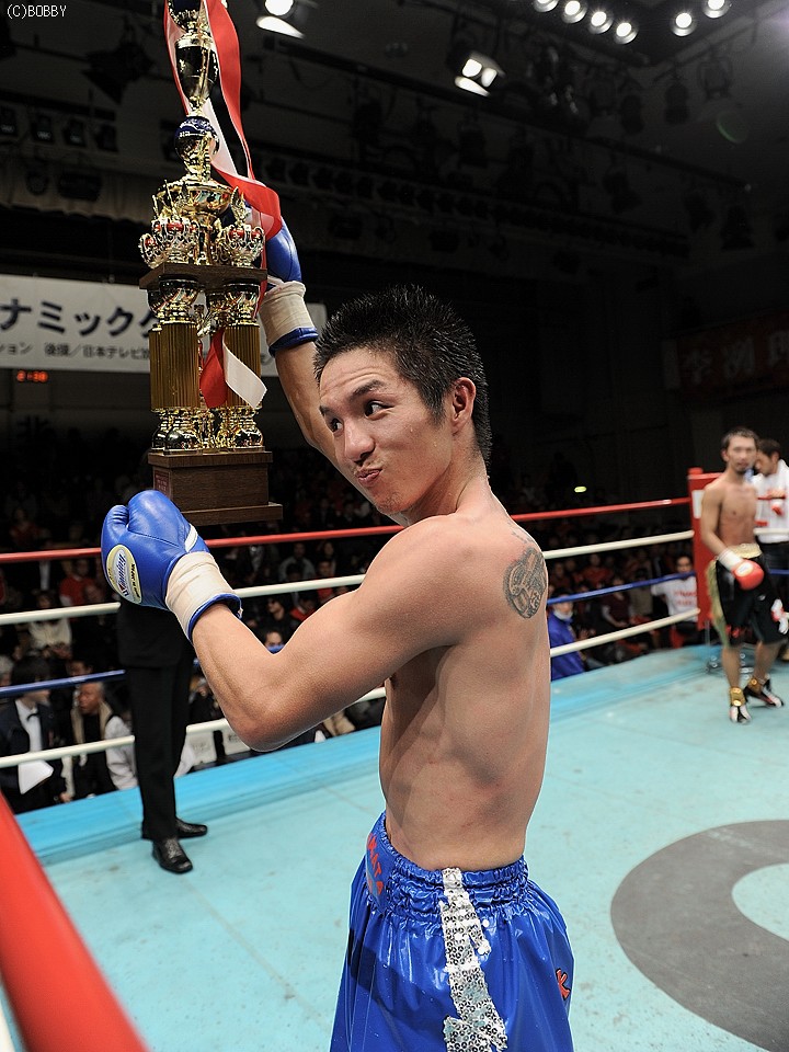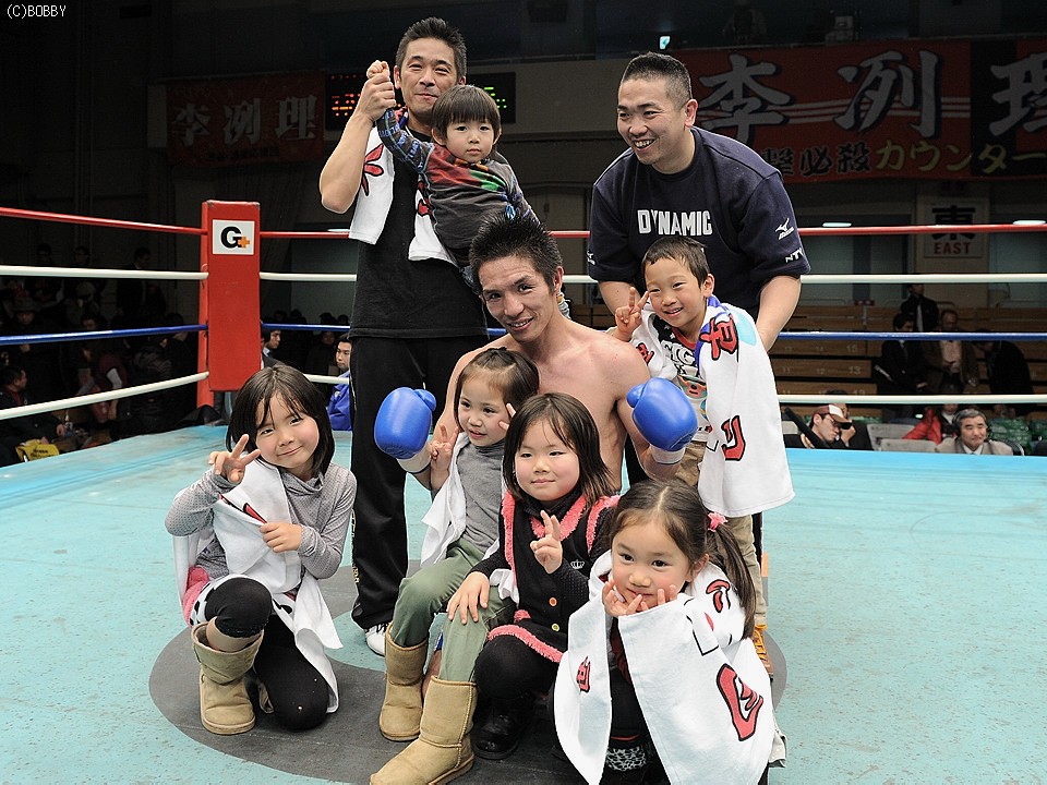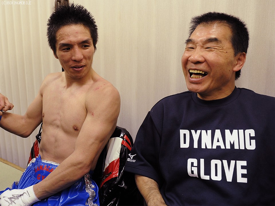 一方、大金星を上げた木村陣営の控え室。花形会長によると、木村は前回のタイ国での世界挑戦失敗からジムには来ていなかったらしく、練習も今回の復帰戦が決まった3ヶ月前から開始したそうだ。「やる前はほとんど負けると思っていた。判定ではもっと負ける思ったが(笑)、相手を上手く捌いた。世界戦の時よりも良かった。これもベテランの味だな」と、嬉しい誤算に満足げな花形会長。遅れてやってきた木村も「ボクシングはこれがあるから面白い!李選手がどうのより、怪我もなくしっかり練習できたのが一番の勝因。そしてジムの支えがあったからこそ」と会長に感謝。さらに「これで元世界王者を4人も倒したんだからシルバー、いやロートルベルトでもくれませんかね(笑)」とジョークを飛ばした。