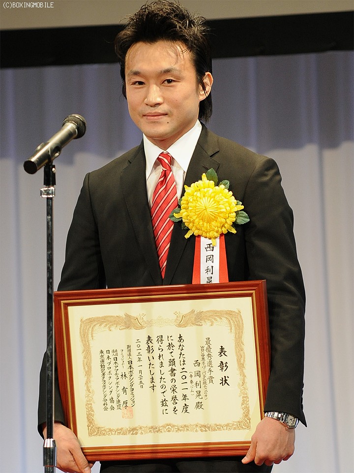 プロ部門では、WBC世界スーパーバンタム級王者・西岡利晃(帝拳)が昨年に続き最優秀選手賞を受賞し、年間最高試合賞とダブル受賞となった。
