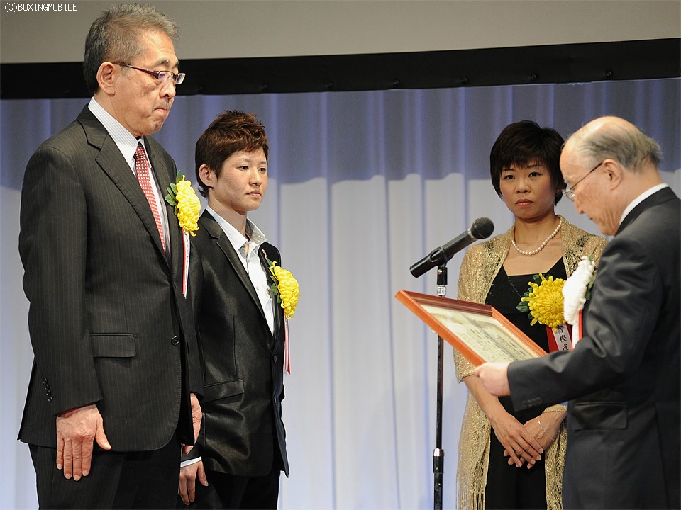 「今年は沢山の世界チャンピオンがいる中から選出して頂き、本当に感謝しています。ボクシングはただの殴り合いではなく、素晴らしいスポーツです。今年もボクシングの魅力を皆さんに感じてもらえるよう、選手一同頑張ります!!」と決意を語り、ダブル受賞については「MVP・年間最高試合とダブル受賞を聞いたときは、家族で飛び上がって喜びました。日本人として初めてラスベガスで防衛戦を果たせて嬉しい。今年はドネアしか見ていない!!やるならば必ず"勝ち"ます」と世紀の大一番を既に見据えていた。