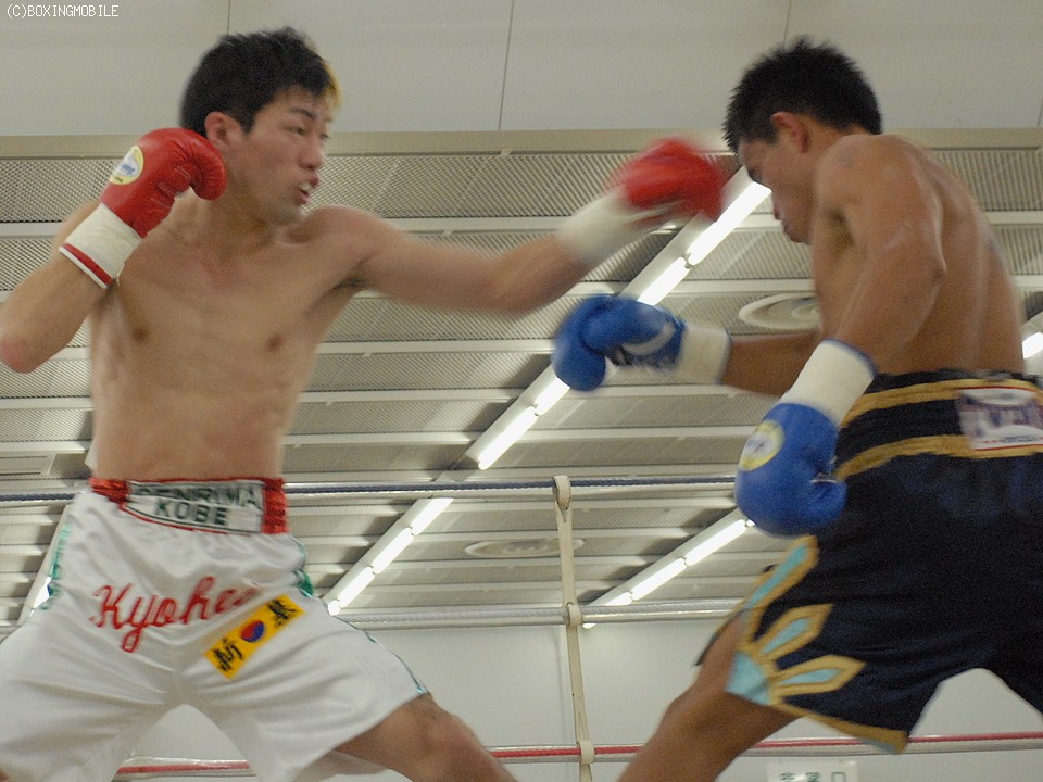 玉越は強烈な右ストレートを当てダウン寸前まで持っていくも、無情にもラウンド終了の鐘。後半、タイのペッチナムチャイ・ジッティージムもタフなところを見せ、一度も倒れることなく終了したが、判定は3-0と玉越の圧勝であった。