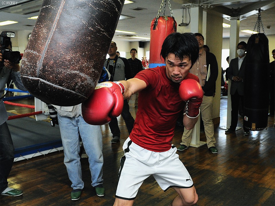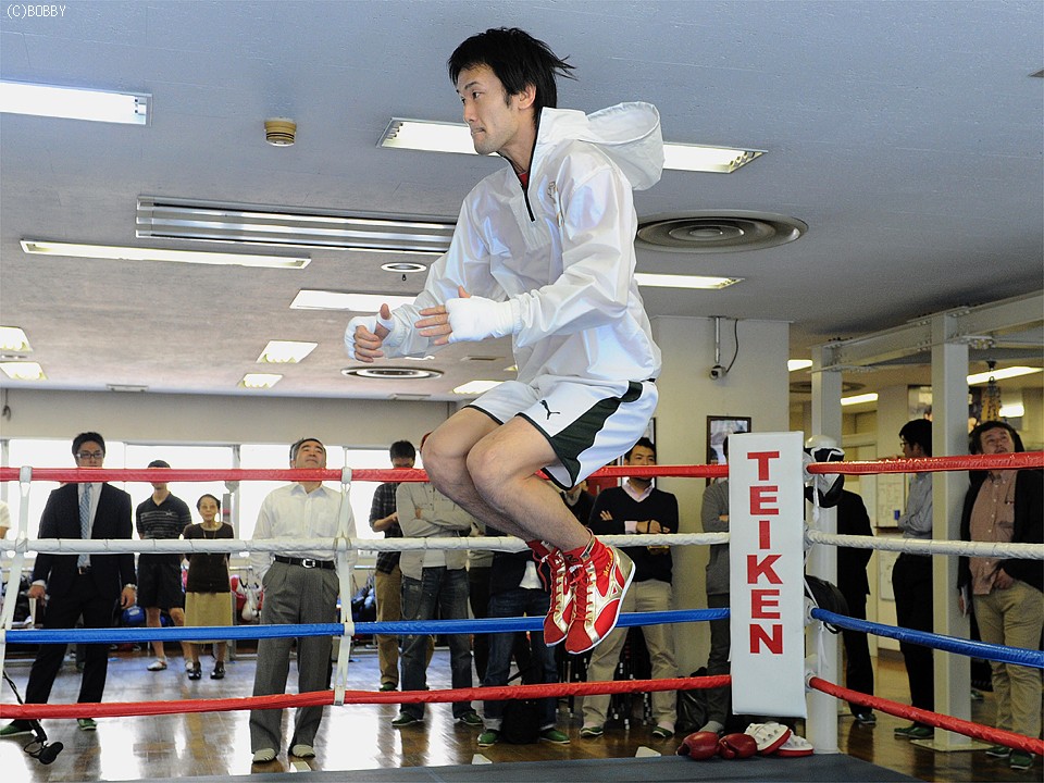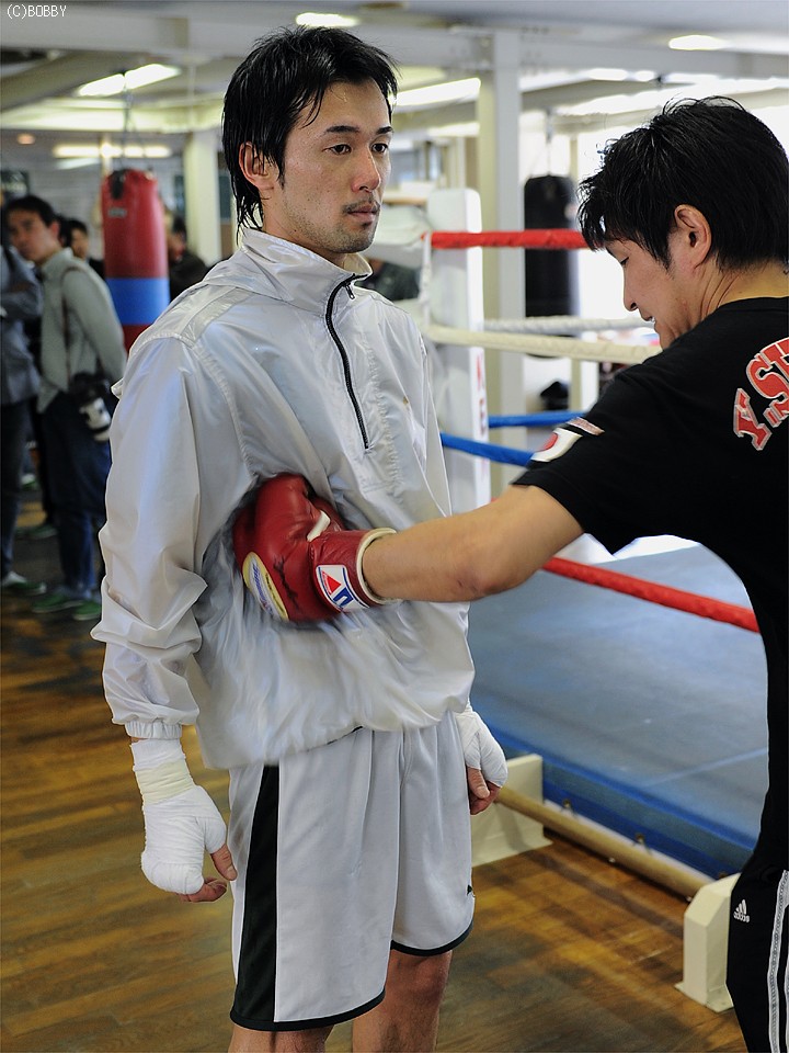 来る4月6日、東京国際フォーラムで、WBC世界バンタム級王座の初防衛戦に臨む"Lightning"山中慎介(帝拳)が29日、都内・帝拳ジムで報道陣を招き、公開スパーリングを実施した。