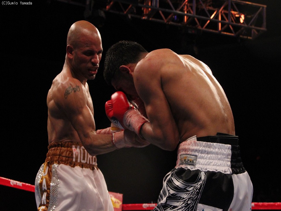 モレルもときおり好打を放つが効果はもうひとつ。マレスがスピードと手数で勝り、毎回のようにポイントを積み重ねていった。中盤になるとモレルは左目の周囲が腫れはじめ、劣勢が明白になっていった。