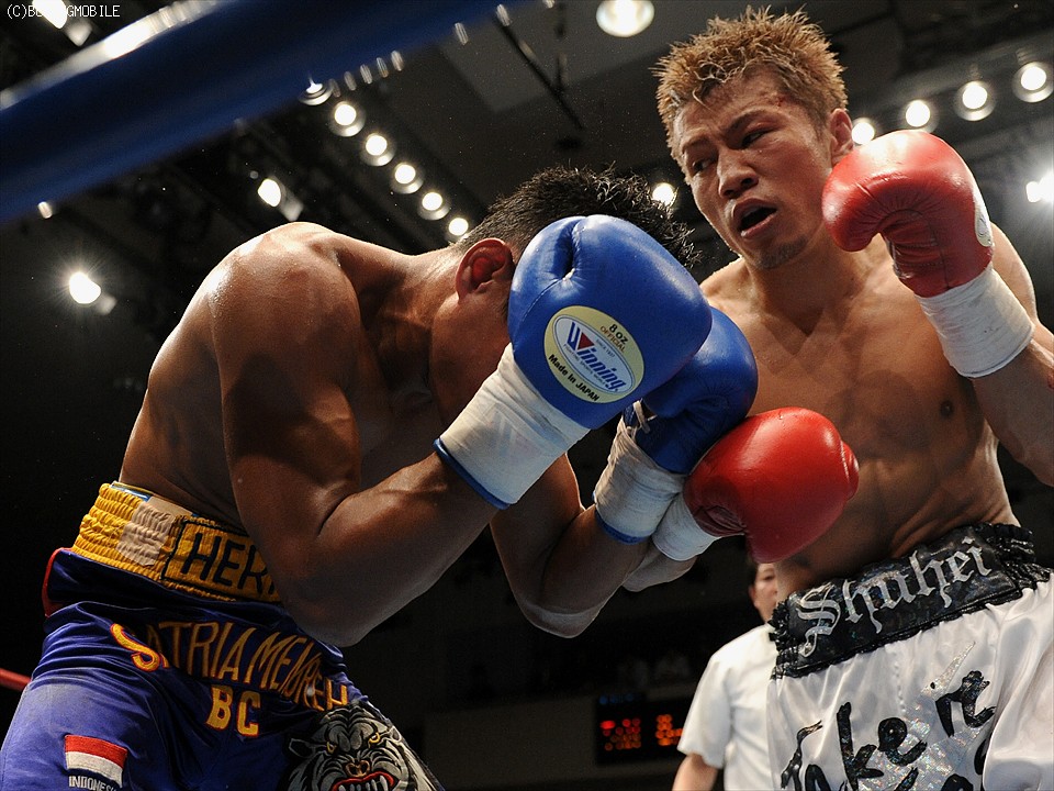 会場は土屋の剛打がヘリ・アンドリヤント(インドネシア)に炸裂し、連続KO記録を"13"と伸ばすシーンに期待が集まった!!