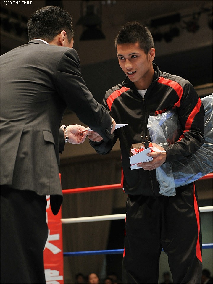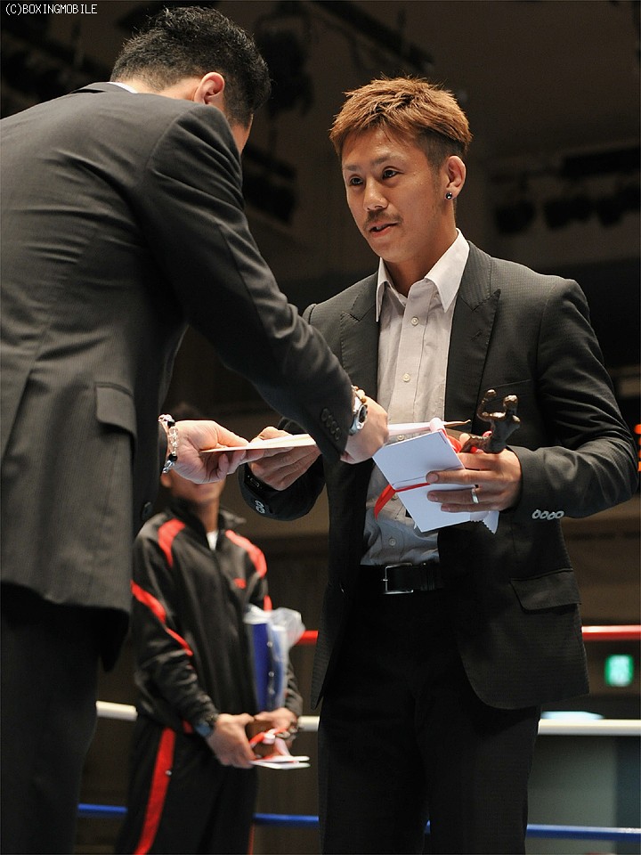 表彰式終了後、新鋭賞の横山雄一(帝拳)、敢闘賞の粉川拓也(宮田)、最優秀選手賞の天笠尚(山上)が今後の抱負を語った。